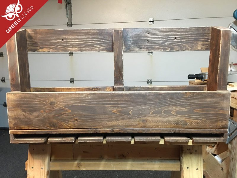 Tip: Put a few extra screws into the top rear board and side 2×4 boards for support, the rear board is usually where you attach to the wall and make sure you find a stud or use anchors. With all the wine, it gets heavy!